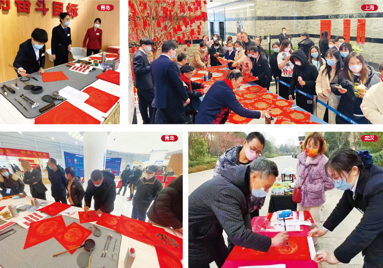 每當春節來臨,家家戶戶除了準備年貨之外,必不可少的就是貼春聯,這也是我們國家的傳統文化。在這辭舊迎新之際,武漢公司、上海港陸廣場、青島市民中心工作人員組織業主/客戶們匯聚一堂,伏案揮毫,送上新春的祝福。