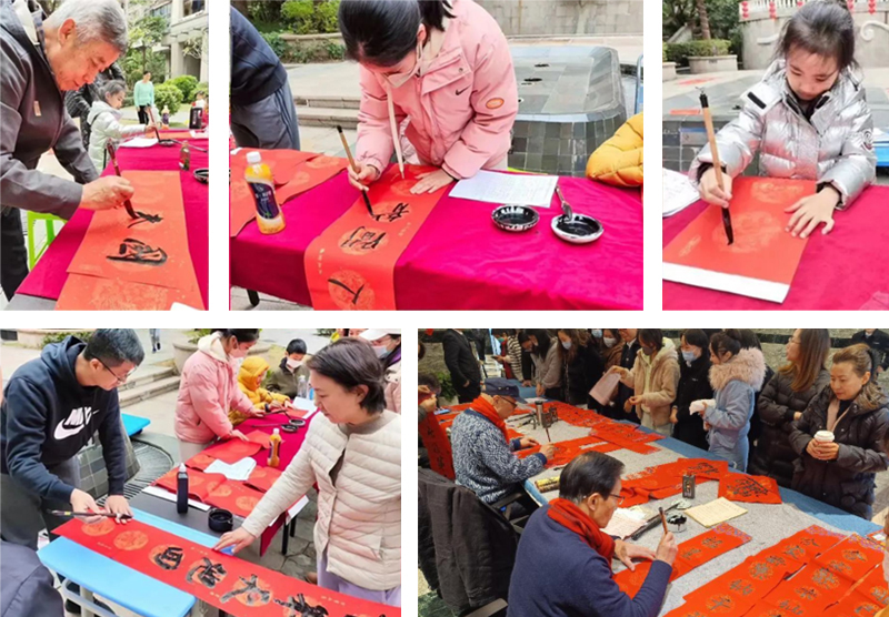 家家戶戶,齊聚園區,歡聲笑語、格外熱鬧。在社區內,木桌長凳整齊擺放,寫春聯、做燈籠,豐富多彩的活動,與業主一同體驗傳統文化的魅力,熱熱鬧鬧迎春節!大家一起揮毫潑墨,將祝福傳遍社區,過年的氣氛瞬間拉滿。