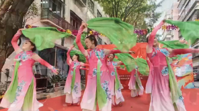 伴隨著鑼鼓聲聲、嗩吶陣陣,瞬間全場活躍,正式拉開了迎新年文藝匯演的序幕。演出過程節目豐富多彩,嘹亮的歌聲、精美的舞蹈、雜藝舞龍,小區里熱愛藝術表演的阿姨們手執折扇,翩翩起舞……給大家帶來了一場場精彩的表演,社區網格員們也紛紛獻藝表演,參加到活動中來。