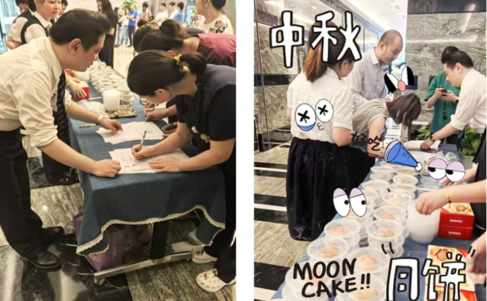 丹桂飄香,金秋送爽,在2024年9月13日,港陸廣場物業管理處舉辦了 “情滿中秋?金秋獻祝福” 活動。中秋佳節,承載著人們對豐收、團圓和美滿的期盼。為了讓客戶感受傳統節日的儀式感,物業工作人員積極籌備。清晨,客服部的小伙伴們就開始精心準備,擺好臺布,放上吉祥物和月餅。我們還特意準備了上海本地老品牌鮮肉月餅,分裝好后送給每一位客戶。中午,物業管理處全體同仁與廣大客戶共同迎接這一傳統節日。活動現場充滿了歡聲笑語,大家品嘗著月餅,相互問候與祝福,氛圍感十足。物業工作人員與客戶的積極互動,營造了同賞中秋月共話家國情的美好氛圍。