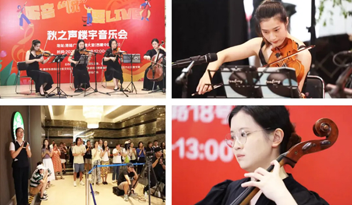 2024年9月12日中秋佳節前夕,泛海物業管理有限公司上海分公司攜手南京東路街道,在港陸廣場舉辦了一場秋之聲樓宇音樂會。演奏嘉賓 “雅嵐” 弦樂四重奏實力非凡,曾在多處演出并獲多項榮譽。音樂會現場樂聲渾厚,觀眾紛紛駐足聆聽,感受秋日上海魅力。《藍色多瑙河》等經典曲目奏響,不同樂器音色交織,感染力十足。一個小時的音樂會讓觀眾感受 “天籟” 之音,心靈仿佛得到凈化。泛海物業以專業與溫情服務提升品牌價值,將在高端服務道路上不斷前行,融入生活每一處。